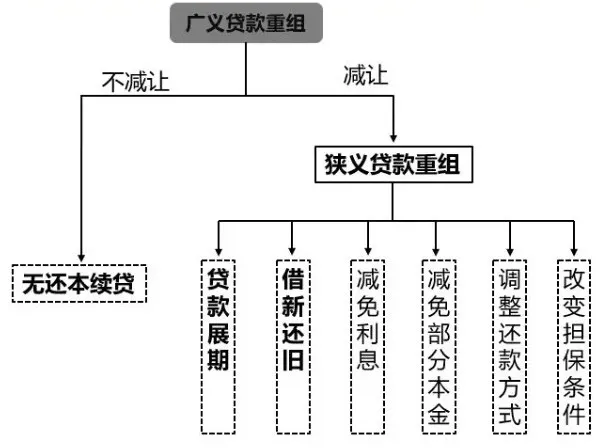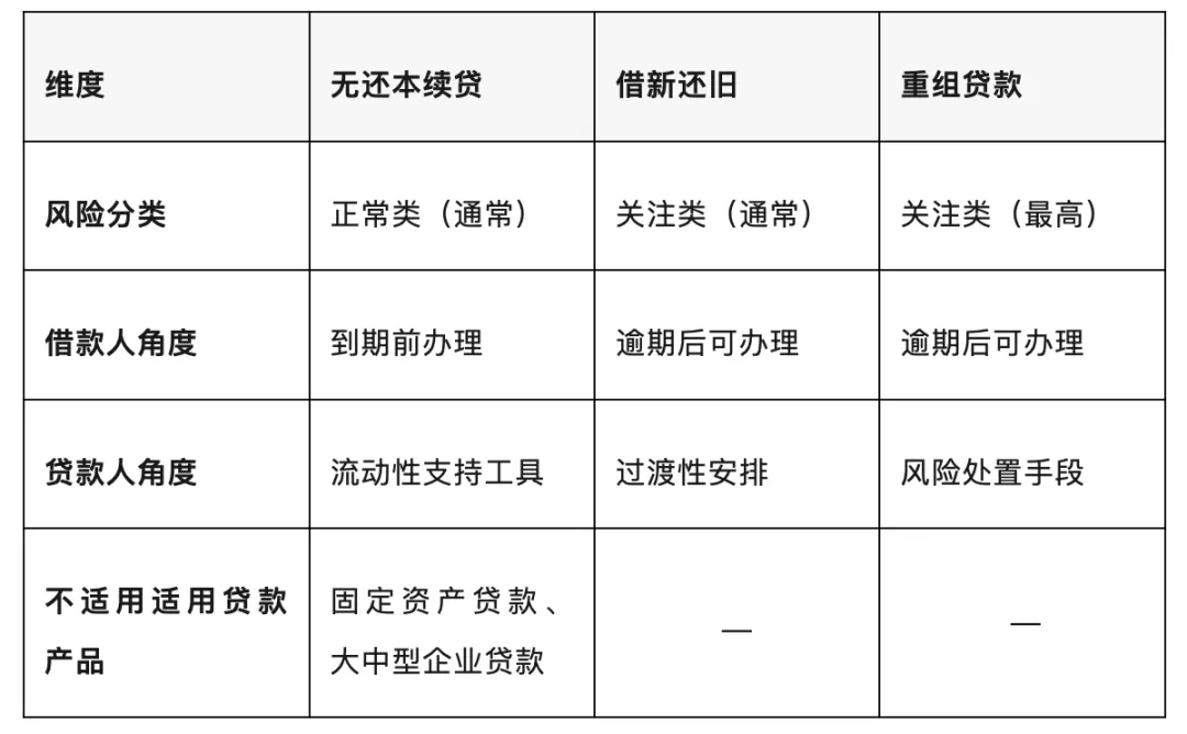 首先,无还本续贷、借新还旧、贷款展期均属于广义的贷款重组范畴。