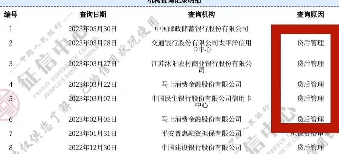 而有的人问为什么我的贷后管理记录和其他人数量不太一致,这是因为不同银行或金融机构查询的频率不同,有的频率高一些,有的则低一些。"贷后管理"完全为正常行为,所以被查的也不必慌张,银行只是例行查询。
