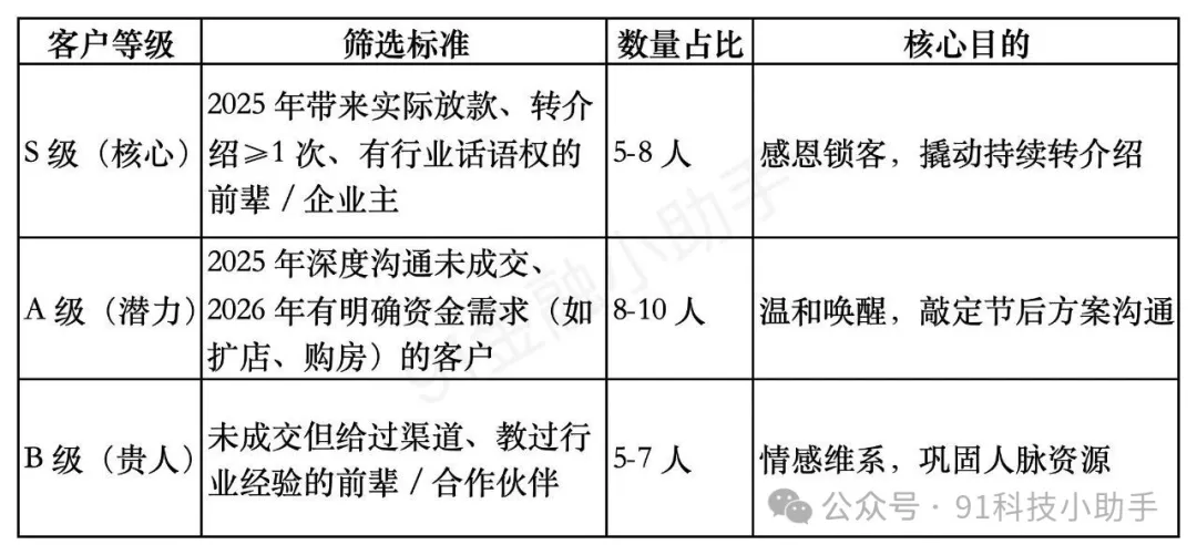 1、找一个不被打扰的2-3小时,为清单上的每个人,逐字编写包含“具体记忆+价值确认”的祝福信息。拒绝复制粘贴。2、发出后,密切留意回复时间。对在下午4点后回复的客户,当天晚上(或次日上午) 果断致电,以轻松语气尝试敲定年后的第一次见面。3、根据对客户的了解,准备一批有故事、可分享、无压力的心意礼物(预算150-300元/份),确保节后拜访时可携带。4、将“节后拜访核心客户”作为你开工第一周的唯一要务,用实际行动证明你的感谢不是一句空话。